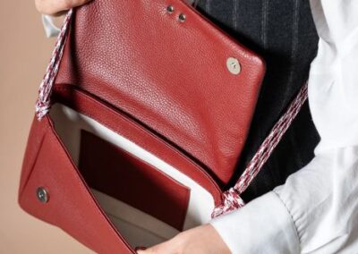 Bandolera larga en nylon y bandolera corta realizada en cordon con acabado de pata de gallo. Ambas bandoleras son desmontables.